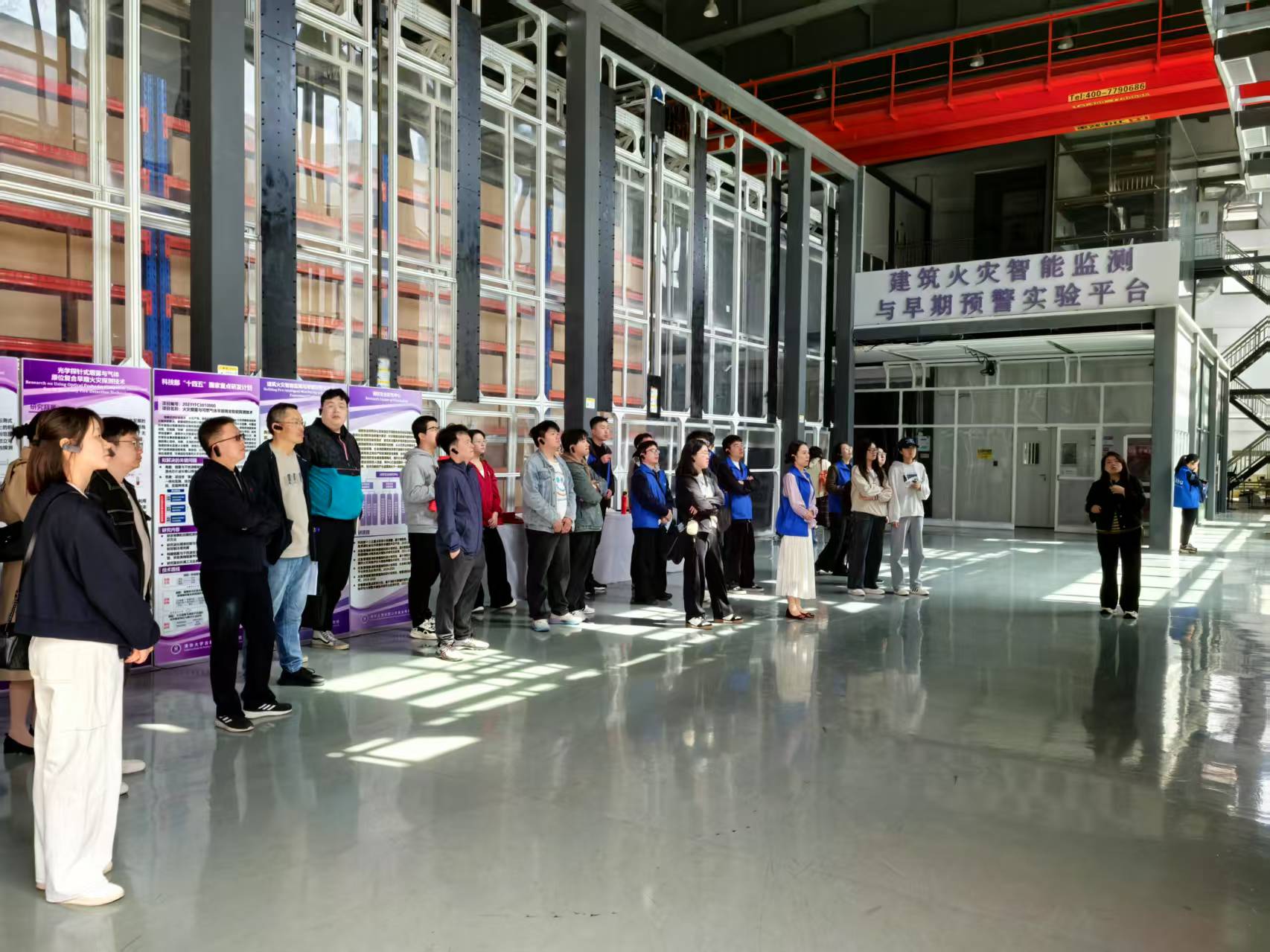 在清华合肥院专家团队的带领下,安理工师生实地参观了城市生命线安全智能化研究实验平台、人员安全防护综合实验平台、多灾害要素耦合作用风洞实验平台、消防与应急救援国家工程研究中心等科研基地。通过现场讲解和互动交流,师生们不仅深入了解了公共安全科技创新及其在社会中的应用,还在实践中感受到了“安全+”大思政课理念的贯穿,强化了学生在专业知识上的积累,同时提升了他们的社会责任感与创新意识。清华合肥院的专家们结合实际案例,讲解了公共安全领域的前沿技术与挑战,强调了理论与实践的紧密结合,激励学生在今后的学习与工作中,勇于担当社会责任,勇敢创新,切实将所学知识服务社会。