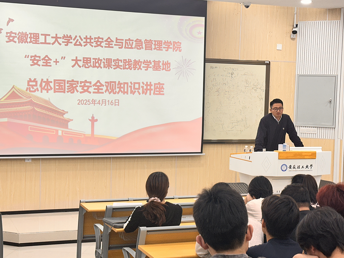4月16日,基地还邀请到综合办张练处长来院为大学生作总体国家安全观宣讲,张练结合当前国际形势,通过"理论阐释+案例剖析+互动研讨"三维教学模式,从基础理论阐释、当前形势分析、政策法规宣讲、多维安全体系构建、实践应对策略、未来发展方向六个方面系统解读了总体国家安全观的丰富内涵,特别针对网络安全、公共卫生安全、恐怖袭击等重点问题进行深入分析,引导青年学子认清当前错综复杂的国际环境。"国家安全不是抽象的概念,而是体现在我们生活的每个细节中。"本次讲座让同学们直观感受国家安全与日常生活的紧密关联。